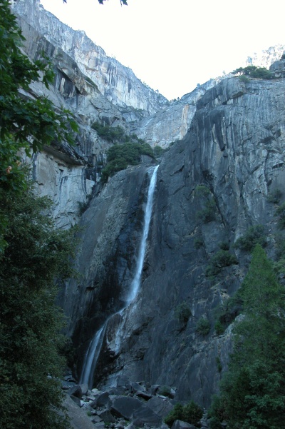 Na een zeer mooie maar ook zeer lange, lanzame en kronkelige weg naar beneden komen we in Yosemite Valley. We proberen hier nog lodging te krijgen maar helaas zit alles al vol. Het enige wat ze beschikbaar hebben zijn veel te dure tenten zonder beddengoed. Dan gaan we wel buiten Yosemite kijken.