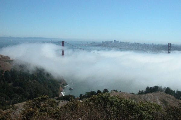 Als eerste gaan we deze ochtend naar de Golden Gate Bridge. We hopen op beter weer maar als we bij de brug aankomen blijkt hij wederom in nevelen gehuld. We rijden de brug over en stoppen aan de andere kant. Daar kan je een stuk omhoog en zo hebben we een prachtig uitzicht over de brug, de baai en San Francisco. Wel allemaal in de mist maar het plaatje blijft fantastisch.