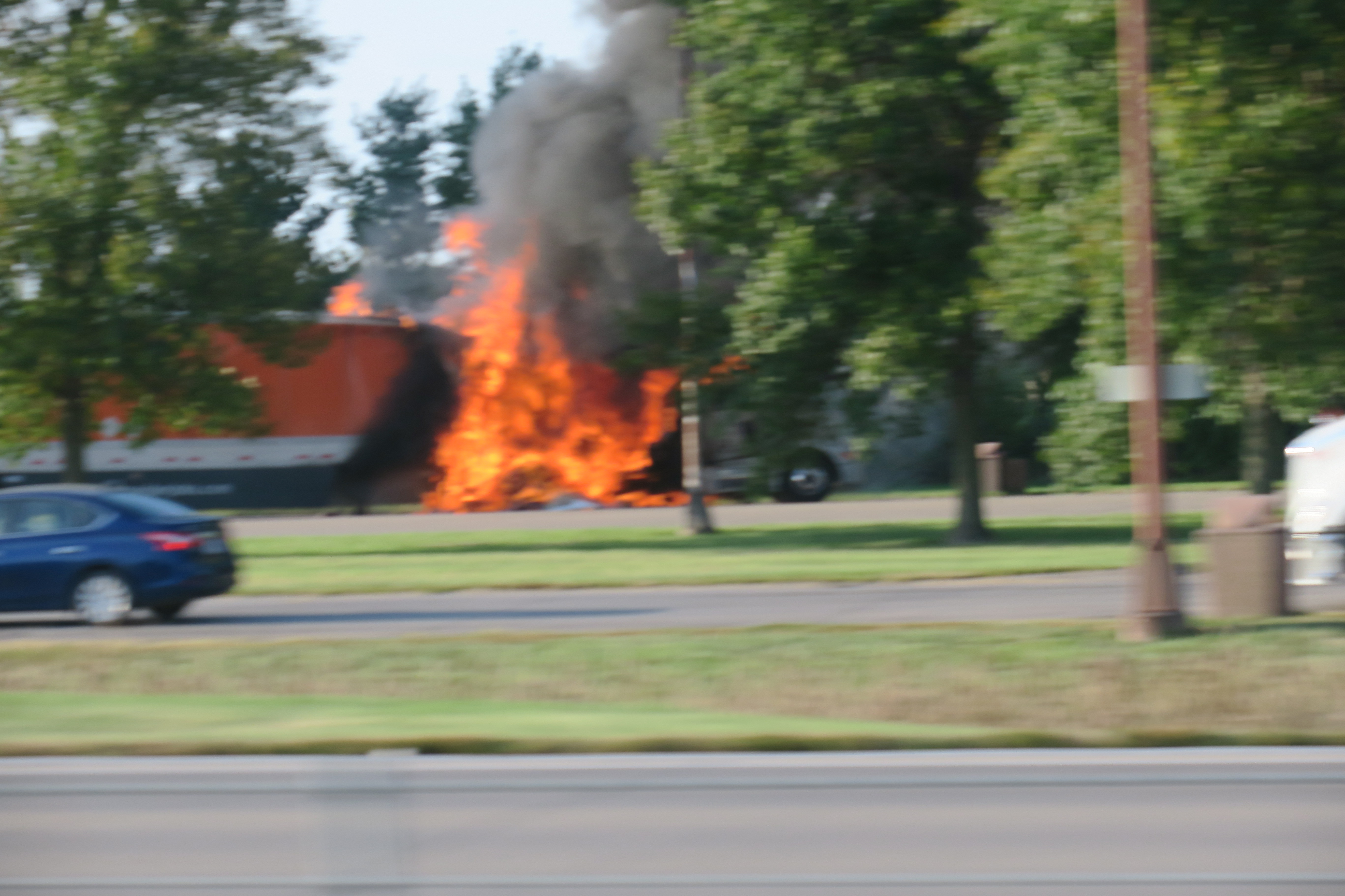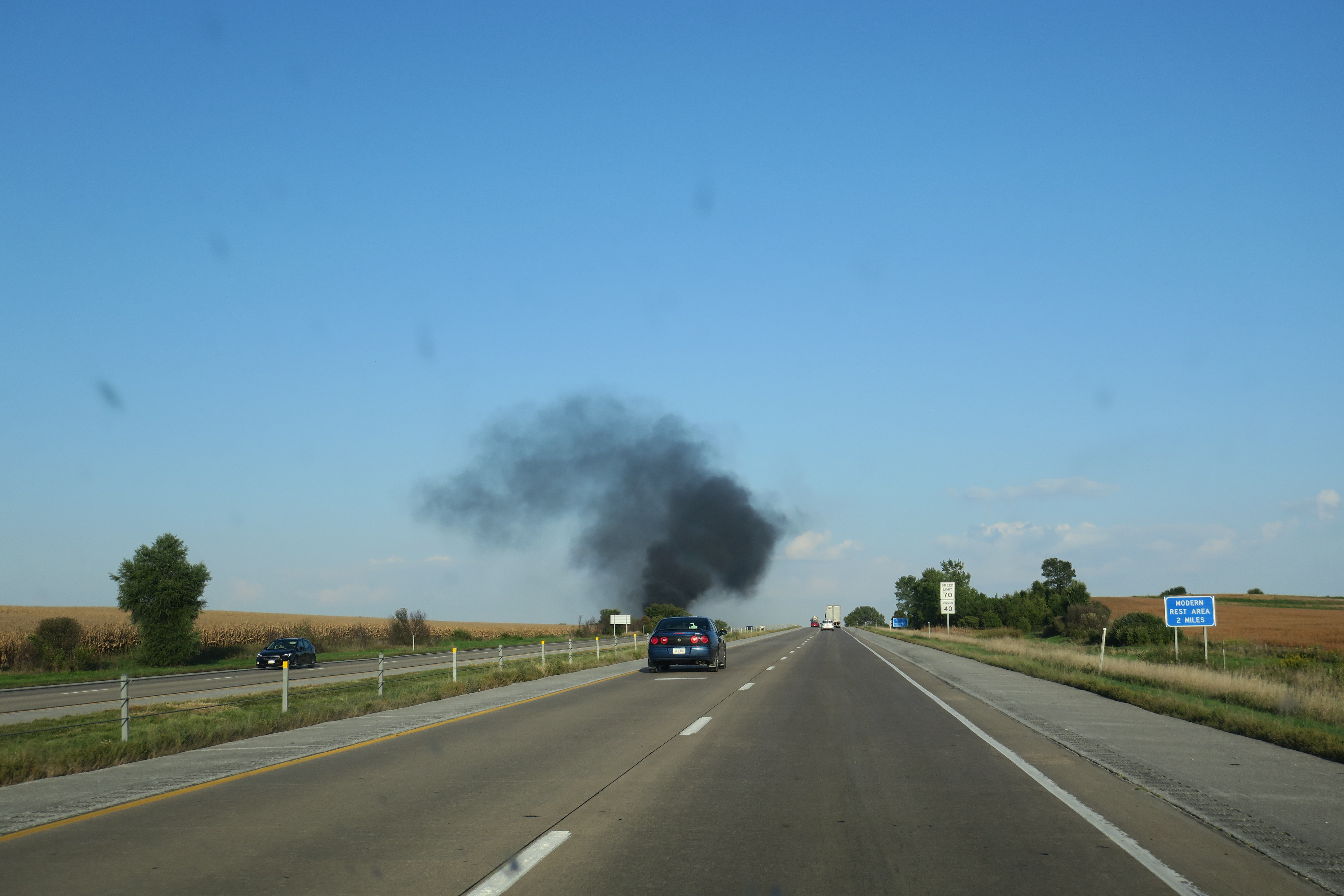 Onderweg gebeurt er verder niet veel bijzonders tot we in de verte een grote, dikke rookpluim zien. Als we voorbij rijden blijkt er een vrachtwagen in de brand te staan. Zo hebben we toch nog wat spanning onderweg.