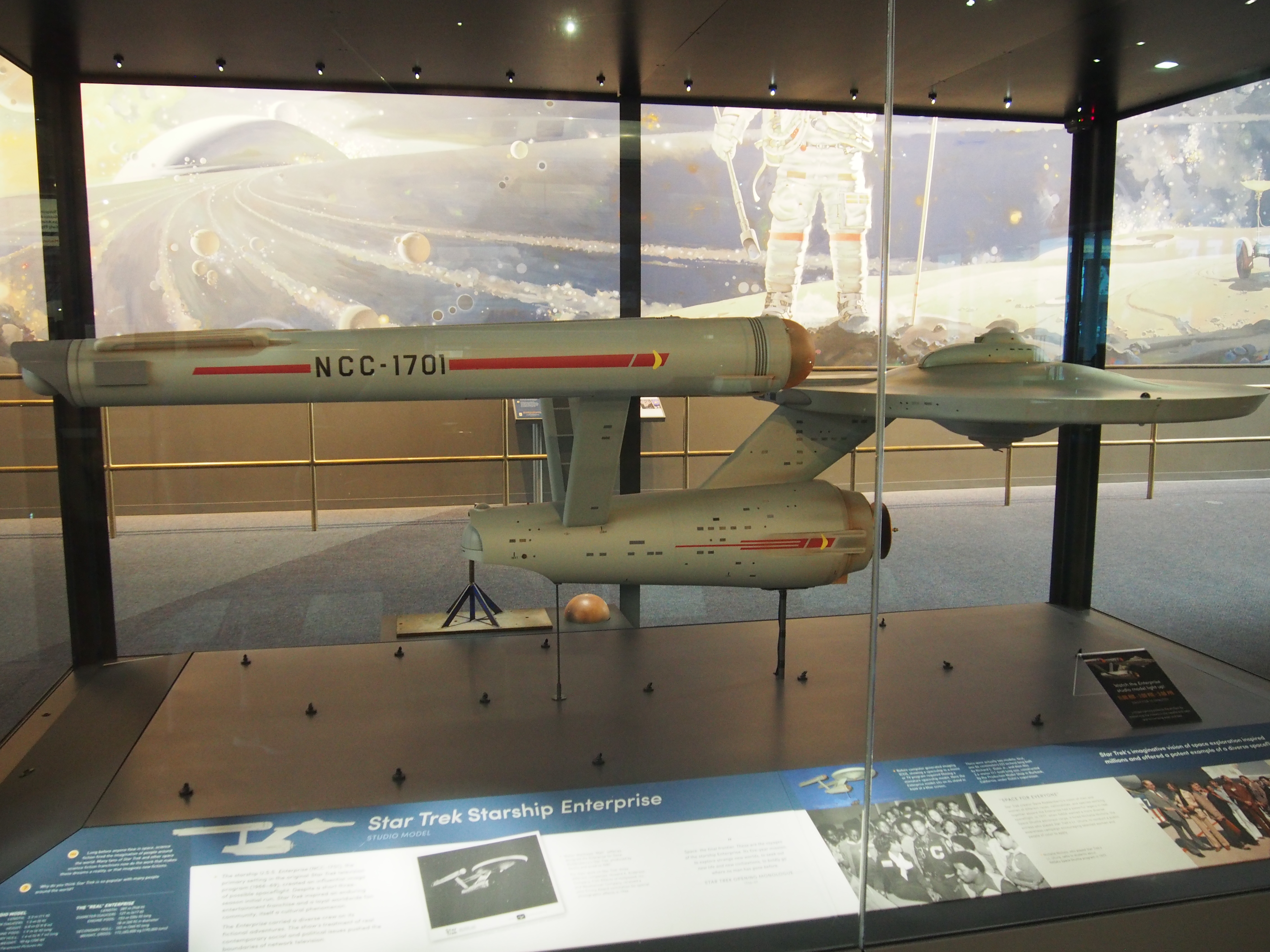 Er blijken wel heel veel hallen te zijn en na een paar uur beginnen de voeten toch wel moe te worden. Gelukkig heeft dit museum ook een planeterium en genieten we nog even, al zittend, van een documantaire over dark energie en dark matter. Na deze welkome rustpauze lopen we nog even door de giftshop maar aangezien het museum bijna gaat sluiten gaan we weer naar buiten. Bij de uitgang zien we nog een leuke verassing voor de echte Star Trek kiefhebbers.