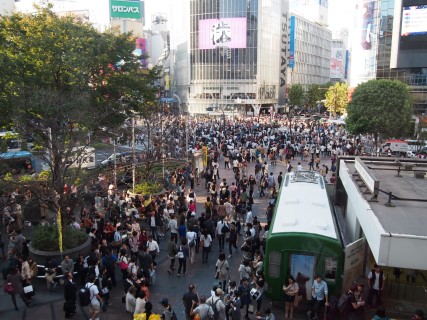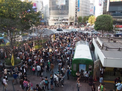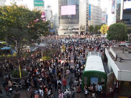 We wandelen Yoyogi park uit en gaan op weg naar Shibuya station. Voor Shibuya station ligt een van de drukste voetgangers kruispunten van Tokyo. Zodra het voetgangerslicht op groen gaat lijkt het kruispunt te verdwijnen in een mensenmassa om weer tevoorschijn te komen zodra het licht weer op rood gaat. Nadat we het kruispunt aanschouwd hebben gaan we terug naar het hotel.
